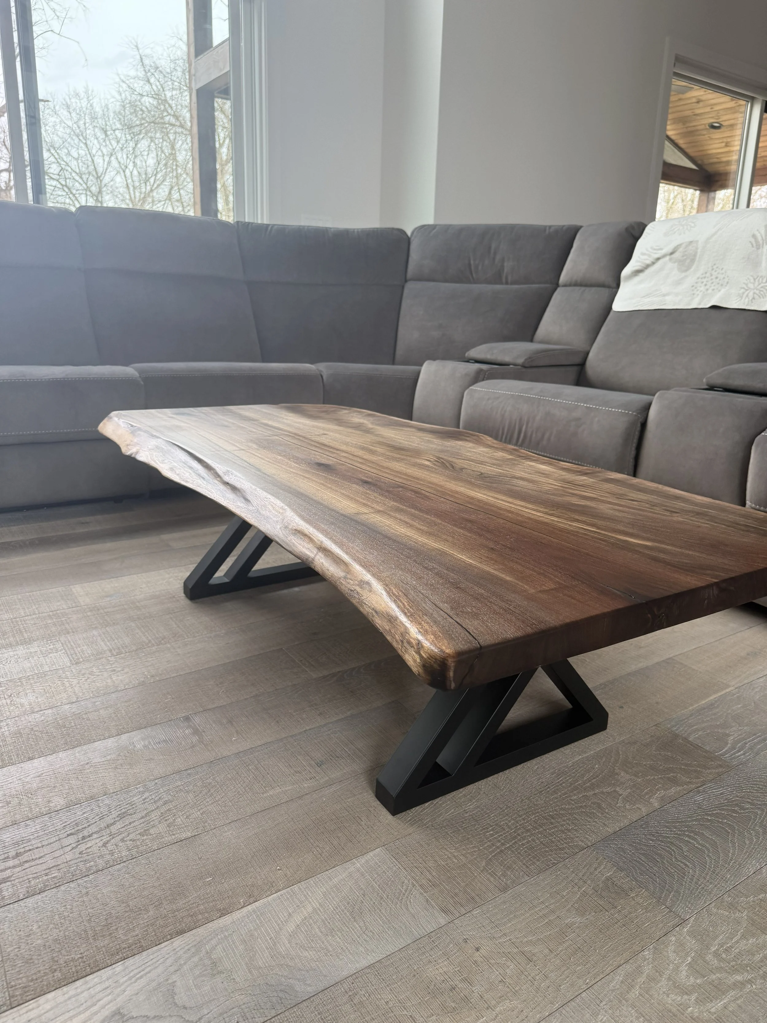Our custom coffee tables are designed to be the centerpiece of your living space. Each piece is handcrafted from carefully selected hardwood slabs that highlight the natural grain, character, and live edge of the wood.